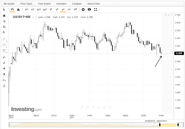 最近の米国債の利回り下落は、国債市場が危険シグナルを嗅ぎつけた証拠だ、とマナリノ氏は言います。報道されているように、米国はシリアをミサイル攻撃し、北朝鮮にもミサイルを撃ち込む可能性があります。